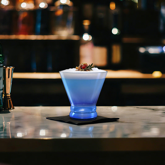 NUTRIUPS 8oz Blue Frosted Stemless Martini Glasses, Matte Finish Fingerprint-Resistant Glassware for Home Bar, Parties & Gifts, 4-Piece Set