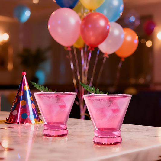 NUTRIUPS 8oz Colorful Stemless Martini Glasses, Pink Cocktail Cups, Bar Glassware for Home Party, Wedding & Daily Use, Set of 4
