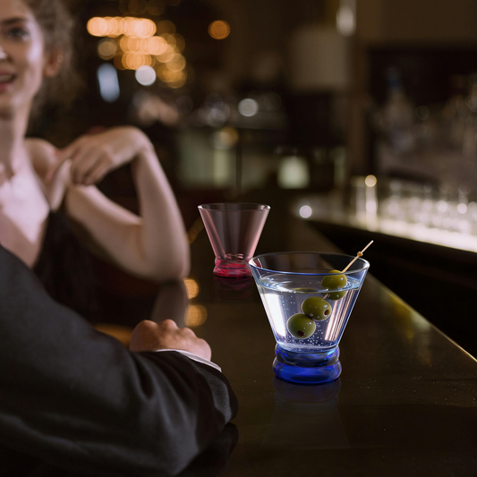 NUTRIUPS 8oz Colorful Stemless Martini Glasses Set of 4, Blue/Yellow/Pink/Green Cocktail Cups, Bar Glassware for Home Party, Wedding & Daily Use (Multi)