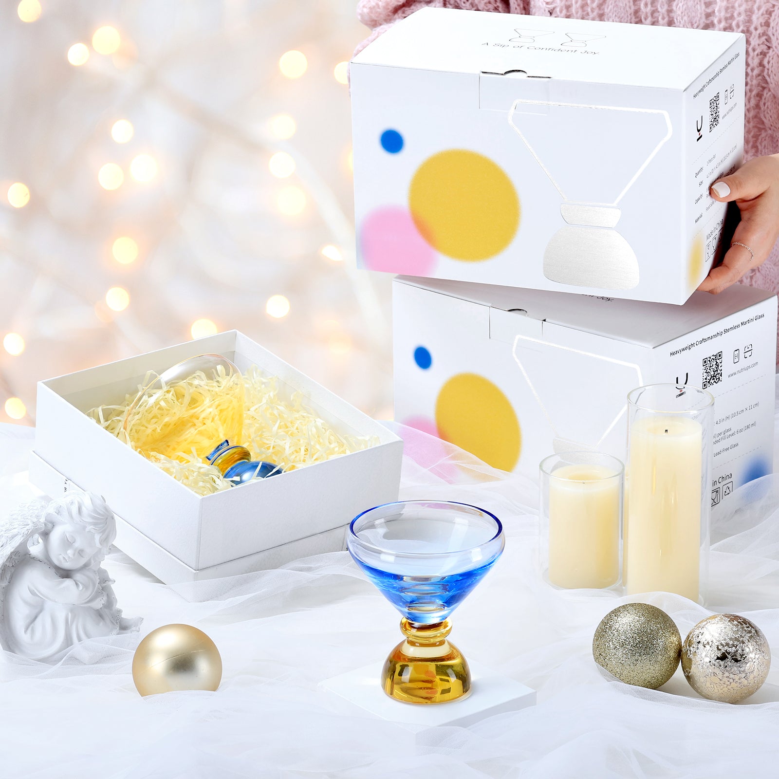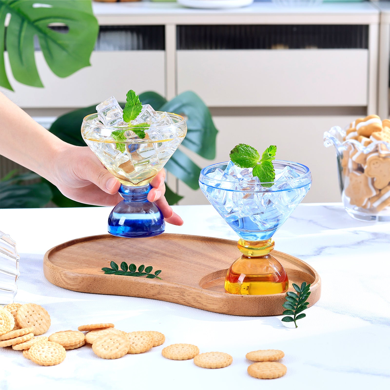 NUTRIUPS 7oz Hand-made Stemless Martini Glasses, Color-block Solid Glass Base Heavy-duty Cocktail Glasses, Aroma-Locking Rim Glasses for Home Bar Party Gifts (Sunny Coast Flip Color Set)
